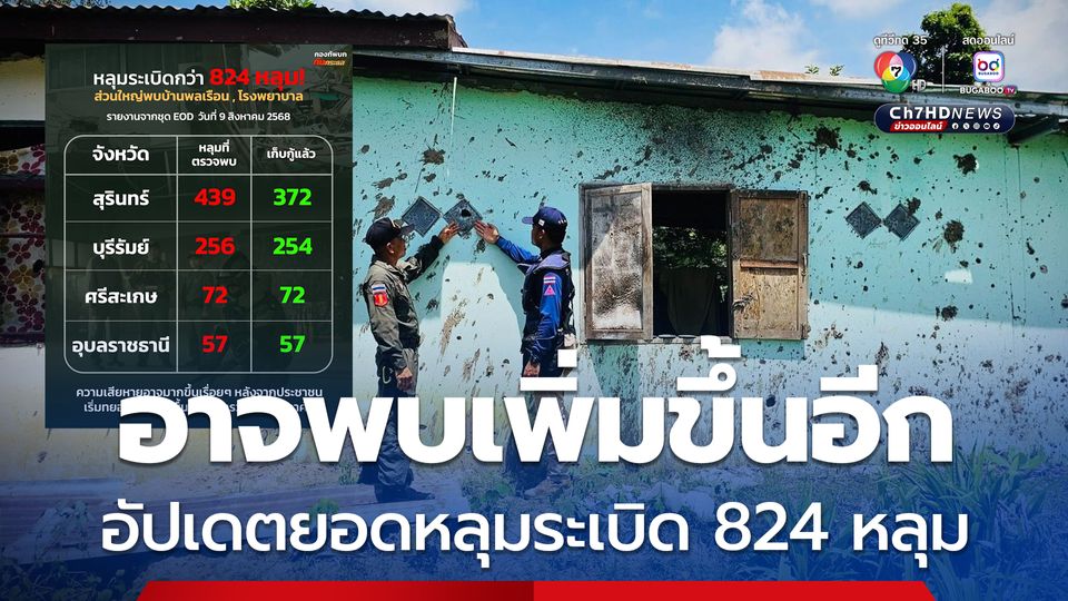 กัมพูชายิงอาวุธใส่เป้าหมายพลเรือน พบแล้ว 824 หลุมระเบิด ส่วนใหญ่ถูกพบใน บ้านเรือนประชาชน โรงพยาบาล