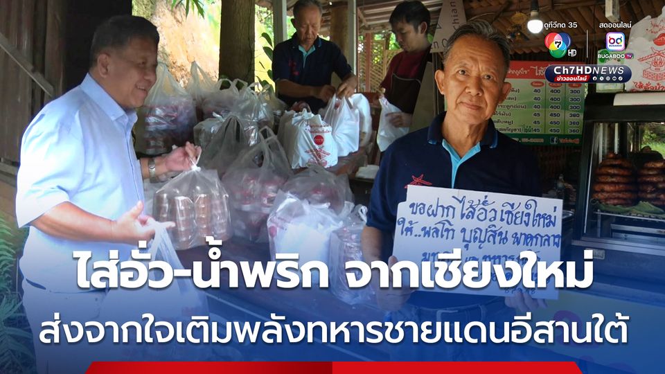 วันนี้ (10 ส.ค. 68) ผู้สื่อข่าวรายงานว่า สมาชิกกลุ่มผู้ผลิตไส้อั่วและอาหารพื้นเมืองบ้านดงป่าลัน และไส้อั่วบ้านอิฐ ต.ขี้เหล็ก อ.แม่แตง จ.เชียงใหม่ ช่วยกันรวบรวมผลิตภัณฑ์อาหารพื้นเมืองสำเร็จรูป มีทั้งไส้อั่วแช่แข็ง 20 แพ็ก น้ำพริกตาแดง น้ำพริกนรก 700 กระปุก และ หมูฝอย 50 กล่อง ส่งไปยังกองทัพภาคที่ 2 เพื่อส่งต่อให้กำลังพลทหารที่ปฏิบัติหน้าที่แนวชายแดนไทย-กัมพูชา ได้กิน ซึ่งเป็นกำลังใจให้กับพี่น้องทหาร โดยอาหารทั้งหมดเป็นการระดมทุนกันเองคนละเล็กละน้อยด้วยความตั้งใจในการแสดงพลังของประชาชนที่อยู่แนวหลัง