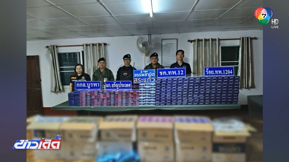ข่าวเด็ดภาคดึก - กองกำลังบูรพา ร่วมกับ ทหารพรานกองร้อยที่ 1204 สกัดจับบุหรี่เถื่อน แอบซุกซ่อนไว้ในไร่อ้อย ขณะออกลาดตระเวนตามแนวชายแดนจังหวัดสระแก้ว ได้ถึงกว่า 13,000 ซอง หากหลุดไปจะส่งผลให้รัฐต้องเสียภาษีเป็นมูลค่าเกือบ 1 ล้านบาท