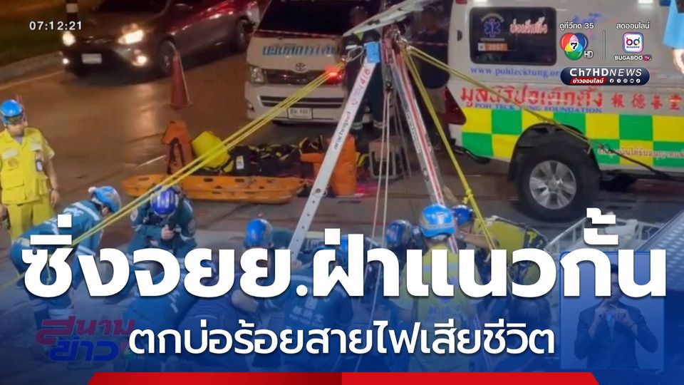 สนามข่าว 7 สี - เมื่อคืนที่ผ่านมา เกิดอุบัติเหตุรถจักรยานยนต์พุ่งชนแนวกั้นจุดก่อสร้างโครงการร้อยสายไฟลงใต้ดิน ทำให้คนขี่เสียชีวิตในที่เกิดเหตุ