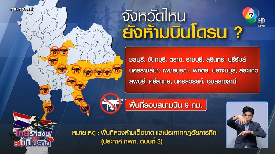 พื้นที่หลัก ๆ ก็มีอยู่ 5 ประเภทใหญ่ ๆ ตามประกาศ กพท. ที่ยังคงคุมเข้ม ห้ามบินโดรนขึ้นเด็ดขาด ถ้าดูตามกราฟิก ก็มีอยู่กว่า 10 จังหวัด ที่ห้ามทำการบินโดรน เด็ดขาด และส่วนใหญ่เป็นพื้นที่ทางทหาร อาทิ (ฐานทัพเรือสัตหีบ ) จังหวัดชลบุรี จันทบุรี ตราด หรือถ้าไปทางภาคอีสาน ก็มีทั้งที่ สุรินทร์ บุรีรัมย์ ศรีสะเกษ อุบลราชธานี และนครราชสีมา รวมทั้งยังควบคุมการบินโดรนในพื้นที่โดยรอบสนามบินระยะ 9 กิโลเมตร ทั่วประเทศด้วย