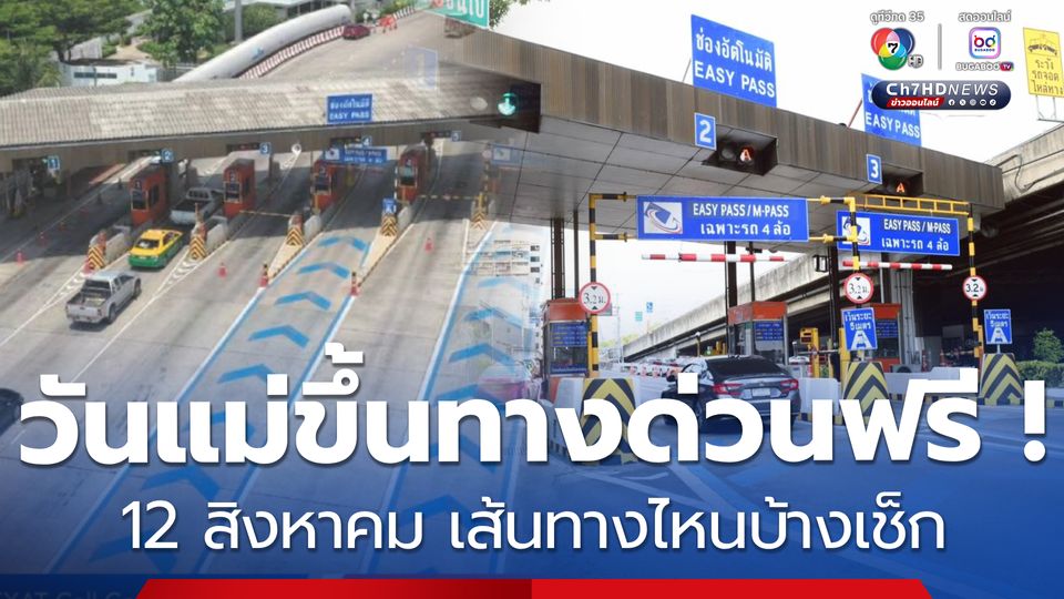 วันแม่แห่งชาติ 𝟷𝟸 สิงหาคม 2568 การทางพิเศษแห่งประเทศไทย (กทพ.) กระทรวงคมนาคม ยกเว้นค่าผ่านทางพิเศษของทางพิเศษรวม 3 สายทาง 63 ด่าน ดังนี้