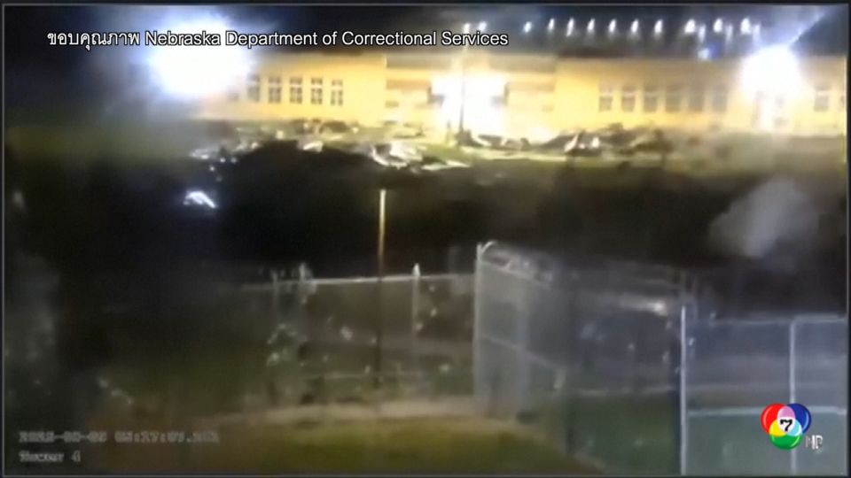 พายุที่พัดถล่มรัฐเนแบรสกา ของสหรัฐฯ ทำให้หลังคาอาคารในเรือนจำเมืองลินคอร์น หลุดลอยไปตามกระแสลม