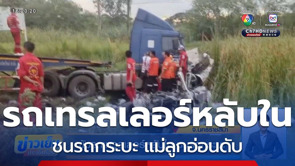 ข่าวเย็นประเด็นร้อน - คนขับรถเทรลเลอร์หลับใน พุ่งข้ามเกาะกลางถนน ชนรถกระบะ ทำให้หญิงชาวจังหวัดบุรีรัมย์ แม่ลูกอ่อน ที่ขับรถมาคนเดียว เสียชีวิตคาที่ ขณะที่โซเชียลแห่อาลัย หลังพบฟิล์มอัลตราซาวด์ในรถกระบะ คิดว่ากำลังตั้งครรภ์ 8 เดือน แต่สุดท้ายพบว่า หญิงคนนี้ คลอดลูกระยะหนึ่งแล้ว