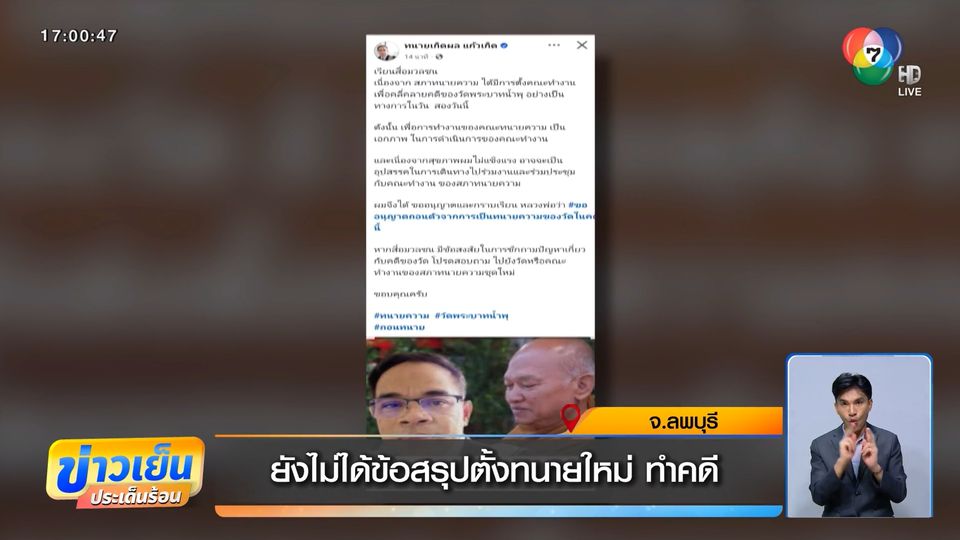 อย่างที่เรารู้กันว่า ทนายเกิดผล จะเป็นทนายที่เข้าไปให้การช่วยเหลือ "วัดพระบาทน้ำพุ" ในการจัดการปัญหาต่าง ๆ ซึ่งก็ตระเตรียมการไปพอสมควรแล้ว แต่จู่ ๆ เจ้าตัวก็โพสต์ข้อมูลขอยุติการทำหน้าที่ทนายความ ให้เหตุผลว่าเพราะมีการตั้ง คณะทำงานที่มาจากสภาทนายความ เข้าไปดูแลเรื่องนี้แล้ว และตนเองก็สุขภาพไม่ค่อยดี