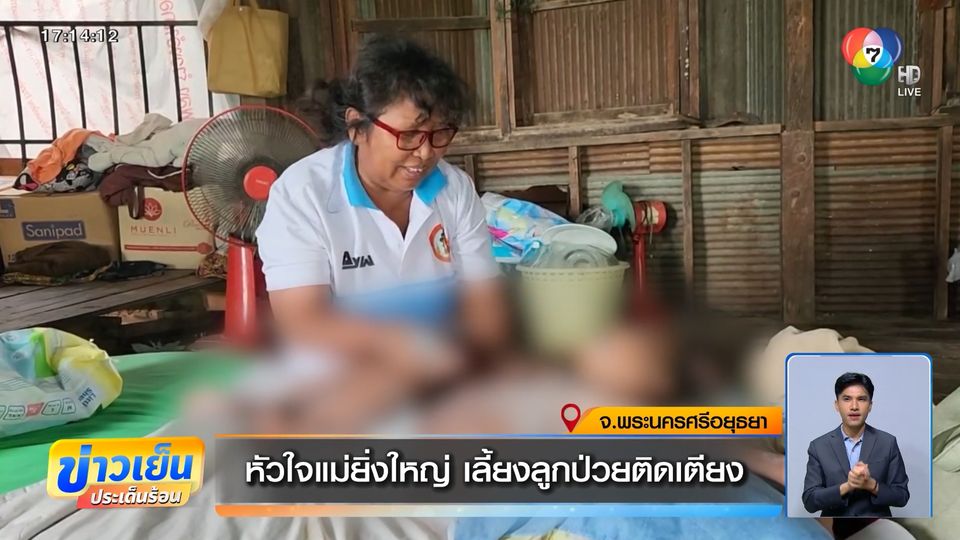 ข่าวเย็นประเด็นร้อน - หัวใจของแม่ยิ่งใหญ่ ไปดูชีวิตของแม่คนหนึ่งสู้อดทนเลี้ยงดูลูกที่ป่วยติดเตียง ไม่ยอมหมดหวัง ไปรับจ้างทำงานหาเงิน พาลูกไปรักษา และตั้งใจจะเลี้ยงดูแลลูกไป จนกว่าจะหมดลมหายใจ