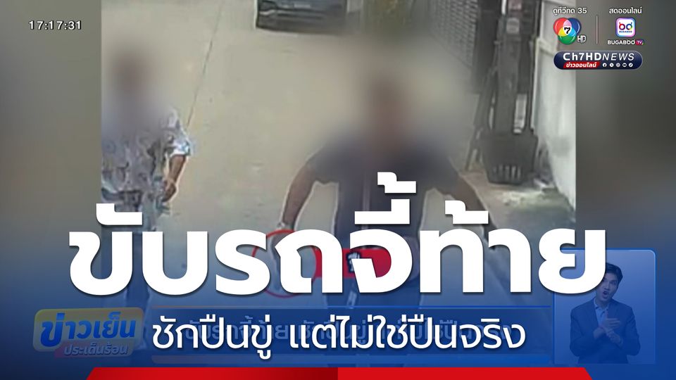ข่าวเย็นประเด็นร้อน - หนุ่มขับเบนซ์ชักปืนขู่หนุ่มรถบรรทุก ไม่พอใจที่ตนเองโดยขับจี้ท้ายภายในซอย จึงหัวร้อนหวังลั่นไก (คลิป)