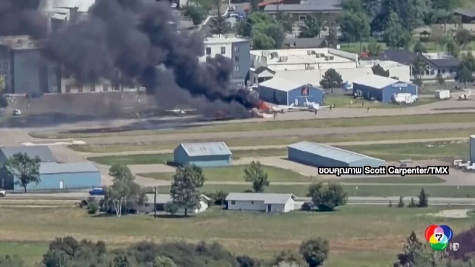 เกิดเหตุเครื่องบินเล็ก 2 ลำ ชนกันบนรันเวย์ที่รัฐมอนแทนา ของสหรัฐฯ ทำให้มีไฟลุกท่วม