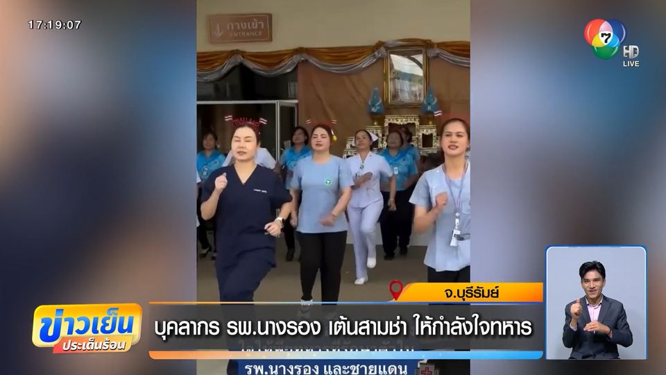 ข่าวเย็นประเด็นร้อน - บุคลากรทางการเเพทย์ โรงพยาบาลนางรอง เต้นประกอบเพลง "เจ้าดอกจำปา" ส่งกำลังใจให้ทหารเเนวหน้า จากเหตุปะทะไทย-กัมพูชา