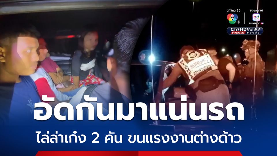 อัดกันมาแน่นรถ! ไล่ล่าเก๋ง 2 คัน ลอบขนแรงงานต่างด้าวชาวเมียนมา คนขับเป็นชาวไทยรับสารภาพได้ค่าหัวคนละ 400 บาท