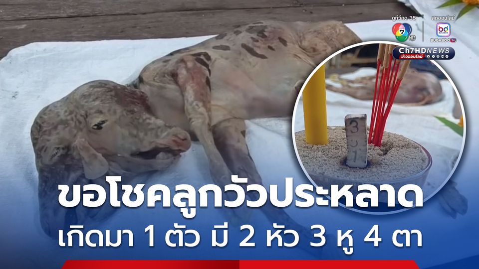 วันนี้ (14 ส.ค. 68) ผู้สื่อข่าวรายงานว่า ในโลกออนไลน์มีการเผยแพร่ภาพลูกวัวประหลาด ภายในฟาร์มวัวนมชื่อ “แสงเดือนฟาร์ม” โดยแม่วัวได้คลอดลูกในวันแม่แห่งชาติ 12 ส.ค. 68 ที่ผ่านมา ซึ่งลูกวัวที่คลอดออกมาเป็นเพศเมีย 1 ตัว แต่มี 2 หัว 4 ตา 3 หู 4 ขา หลังคลอดออกมาได้สักระยะก็ตายในวันดังกล่าว เจ้าของจึงนำแช่เกลือดองไว้ และ ถ่ายรูปแชร์ลงในเฟซบุ๊ก จากนั้นมีเพื่อนบ้านทยอยมาดูและทำพิธีขอโชคลาภดังกล่าว