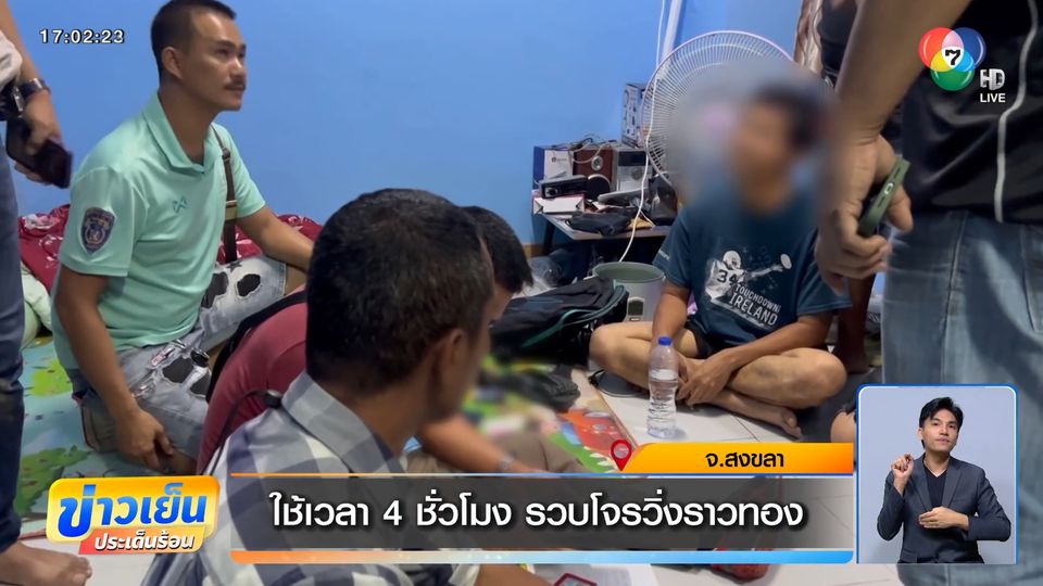 ข่าวเย็นประเด็นร้อน - หนุ่มสงขลา ดักวิ่งราวสร้อยคอทองคำ 2 บาท ก่อนขี่รถจักรยานยนต์หลบหนี สุดท้ายจนมุมคาห้องพัก รับสารภาพหวังหาเงินใช้หนี้ และติดพนันออนไลน์