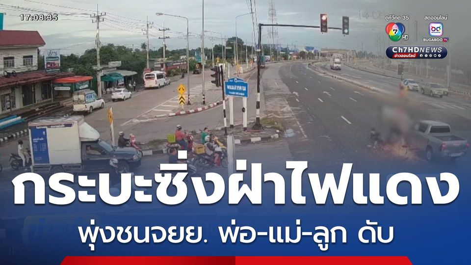 ข่าวเย็นประเด็นร้อน - ที่จังหวัดฉะเชิงเทรา มีอุบัติเหตุสลด พ่อแม่ลูกขี่จักรยานยนต์ข้ามสี่แยกอยู่ดี ๆ ถูกรถกระบะซิ่งฝ่าไฟแดง ชนเสียชีวิตทั้งครอบครัว