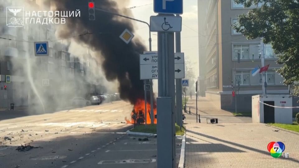 เผยภาพวินาทีที่โดรนของยูเครนตกใส่หน้ารถยนต์คันหนึ่งในแคว้นเบลโกรอด ชายแดนรัสเซีย ทำให้มีผู้บาดเจ็บ 3 คน