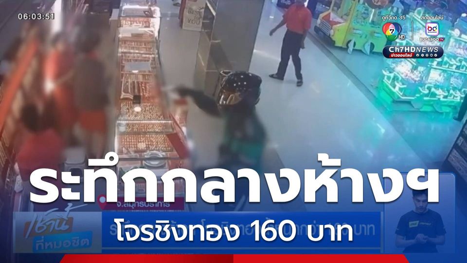 เช้านี้ที่หมอชิต - ผู้การฯ จังหวัดสมุทรปราการ สั่งระดมทีมสืบสวนตามล่าคนร้ายบุกชิงทองกลางห้างฯ โดยกวาดสร้อยข้อมือไปได้หนักกว่า 160 บาท รวมมูลค่ากว่า 8 ล้านบาท