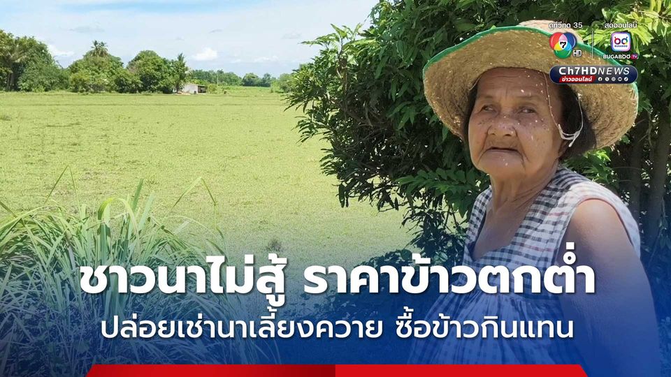 นางประสาร ทศกัณฑ์ อายุ 77 ปี หนึ่งในเกษตรกรชาวนาที่ปกติแล้วจะทำนาปลูกข้าวทุกปี แต่ปีนี้ต้องตัดสินใจหยุดทำนา และปล่อยผืนนาที่มีอยู่ประมาณ 20 กว่าไร่ ให้เช่าเลี้ยงควายแทน เพราะสู้ราคาต้นทุนการทำนาไม่ไหว บวกกับราคารับซื้อข้าวเปลือกตอนนี้ที่ต่ำลงอย่างมาก เรียกได้ว่าแทบจะเทียบเท่ากับต้นทุนทำนา จึงตัดใจไม่สู้ทำนาต่อ และนำเงินค่าเช่านาไปซื้อข้าวสารกินแทน