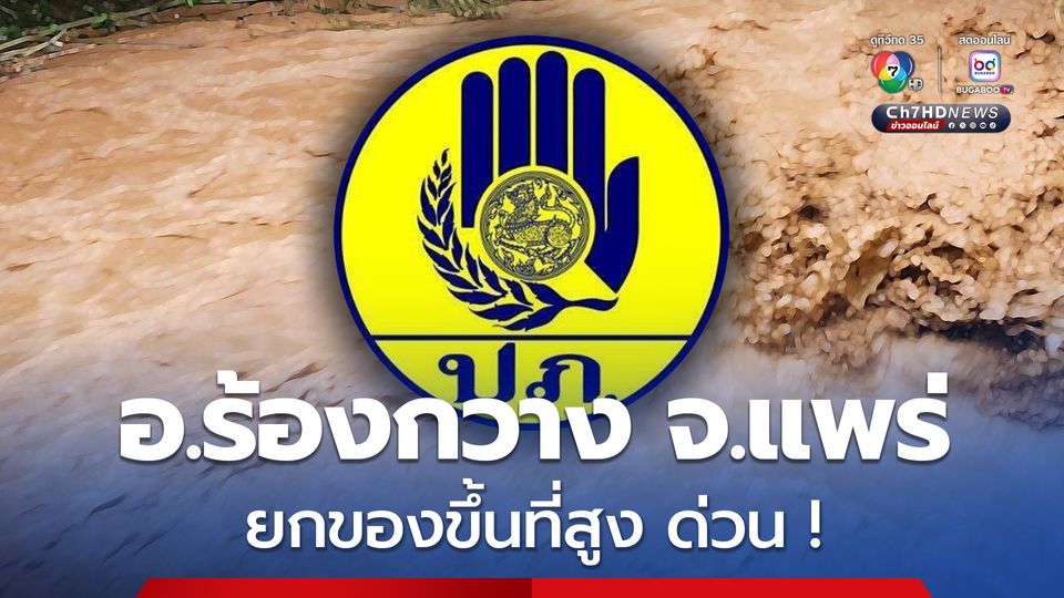 ด่วน! ปภ.แพร่ เตือนระวังน้ำท่วมฉับพลัน น้ำป่าไหลหลาก น้ำล้นตลิ่ง ดินโคลนถล่ม อ.ร้องกวาง ให้ยกของขึ้นที่สูง และดูแล ผู้สูงอายุ ผู้ป่วยติดเตียง