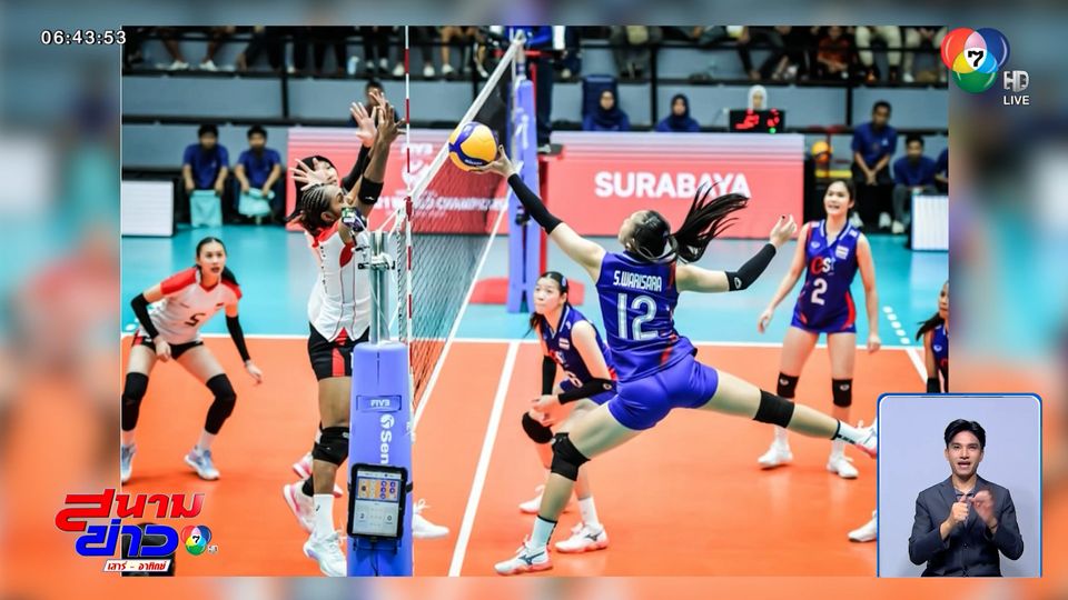 สนามข่าวเสาร์-อาทิตย์ - วอลเลย์บอลหญิง รุ่นอายุไม่เกิน 20 ปี ชิงแชมป์โลก ทีมสาวไทยโชว์ฟอร์มเยี่ยม เอาชนะ อินโดนีเซีย เจ้าภาพ ผ่านเข้าไปเล่นรอบจัดอันดับ 9-12