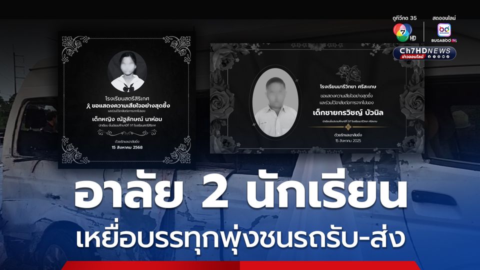 โรงเรียนในจังหวัดศรีสะเกษ โพสต์เฟซบุ๊ก ร่วมแสดงความอาลัย 2 นักเรียน เหยื่อรถบรรทุกเสียหลักพุ่งข้ามเกาะกลาง ชนรถตู้รับ-ส่งนักเรียน พร้อมส่งกำลังใจให้ เด็กนักเรียนที่บาดเจ็บอีก 12 คน