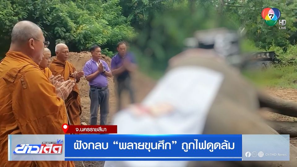 ข่าวเด็ด 7 สี - เจ้าหน้าที่นิมนต์พระทำพิธีฝังกลบ พลายขุนศึก ช้างป่าเขาใหญ่ ถูกไฟดูดล้ม