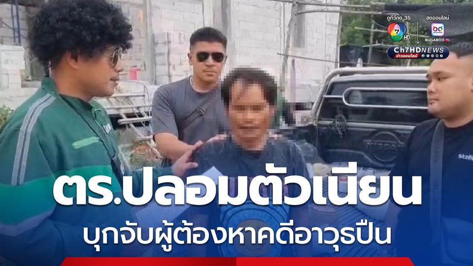 ตำรวจใส่วิก ปลอมเป็นไรเดอร์! บุกจับผู้ต้องหาตามหมายคดีอาวุธปืนกลางไซต์ก่อสร้าง