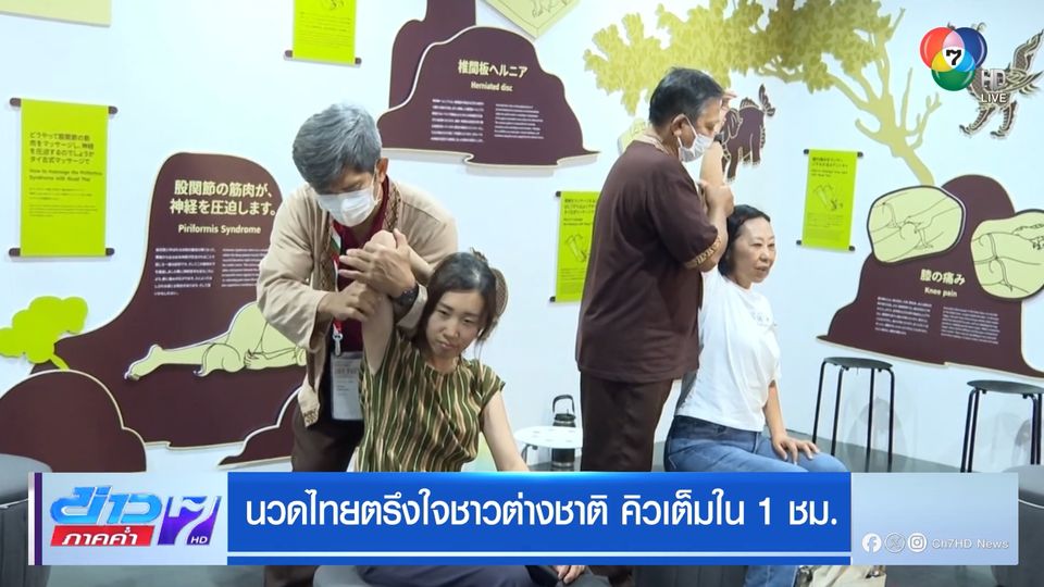 ข่าวภาคค่ำ - ต่างชาติชื่นชมบริการสุขภาพแบบไทย ๆ ที่ยกทัพไปจัดแสดงในงานมหกรรมนิทรรศการระดับโลก Expo 2025 โดยเฉพาะนวดแผนไทย เพียง 1 ชั่วโมง คิวก็เต็ม