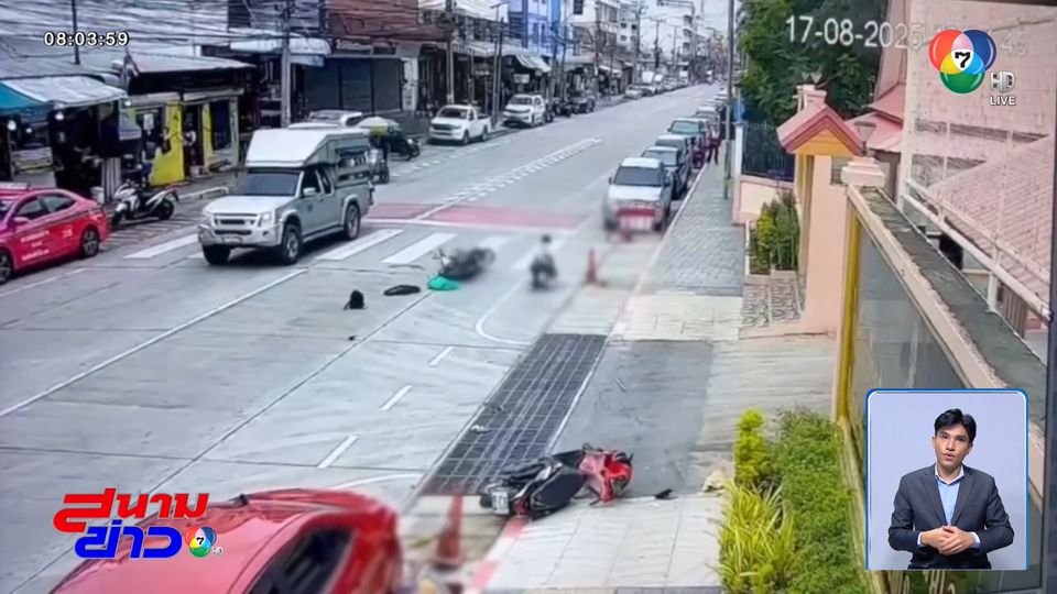 ตกใจเสียงแตร ชนเพื่อนร่วมทาง จ.สมุทรปราการ