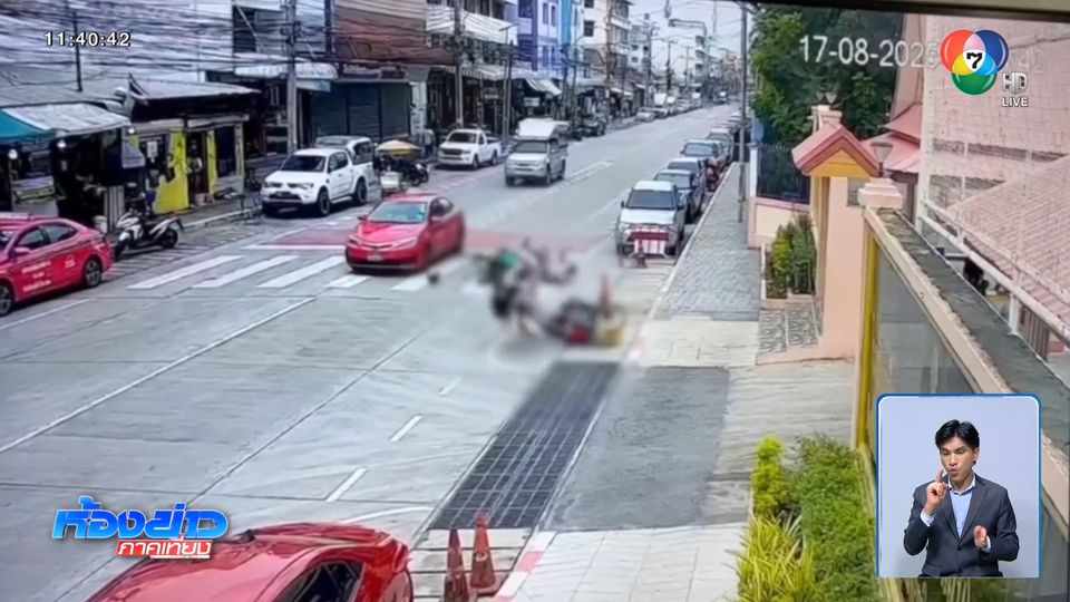 ห้องข่าวภาคเที่ยง - ชายคนหนึ่งขี่จักรยานยนต์มา แต่ถูกรถแท็กซี่บีบแตร ตกใจ จนเสียหลักไปชนกับจักรยานยนต์ที่ขี่แซงซ้าย จนได้รับบาดเจ็บ