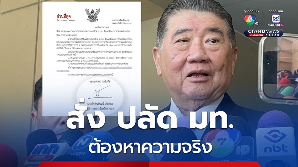 ภูมิธรรม สั่ง ปลัดกระทรวงมหาดไทย หาข้อเท็จจริง หลัง ผู้ว่าฯ สงขลา บอกว่า หนังสือด่วนให้นายอำเภอ ต้อนรับ “เดชอิศม์”เป็นลายเซ็นปลอม และต้องรายงานเรื่องทั้งหมดมาที่ตน