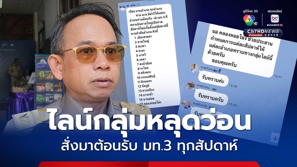 ข้อความในกลุ่มไลน์ดังกล่าวยังแจ้งให้นายอำเภอ คลองหอยโข่ง ช่วยประสานกำหนดการแต่ละสัปดาห์ให้แต่ละอำเภอทราบทางกลุ่มไลน์นี้ด้วยครับ ขอบคุณครับ โดยมีนายอำเภอเข้าหลายคนมาตอบว่า “รับทราบ”