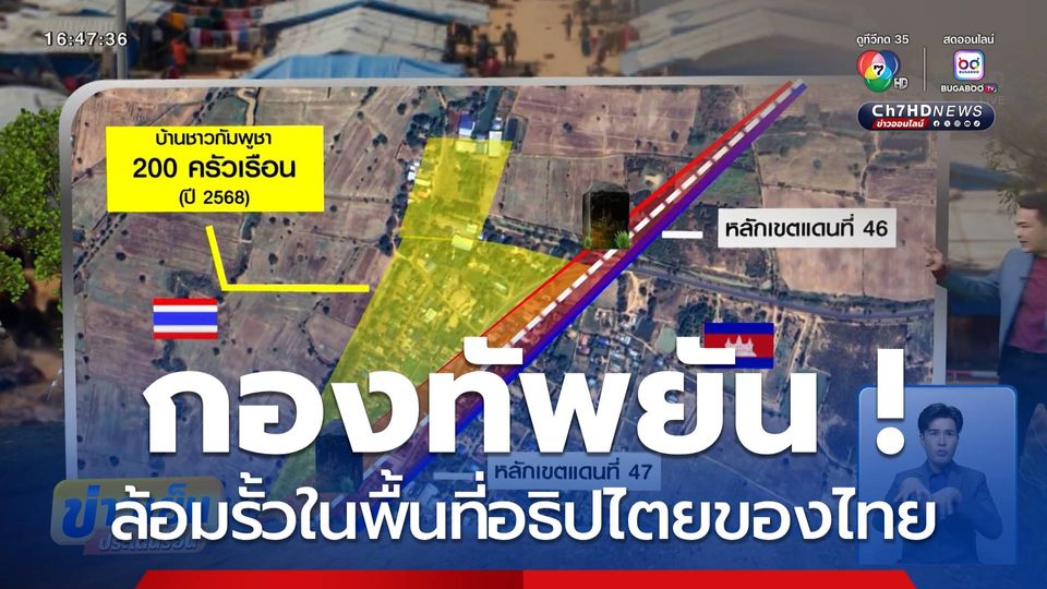 จนเพจ กองทัพบก ทันกระแส ออกมาโพสต์ว่า "นี่แผ่นดินไทย ที่ผ่านมา กัมพูชาอพยพมาอาศัยเป็นที่ลี้ภัยช่วงเขมรแดง ตั้งแต่ พ.ศ.2522 เป็นต้นมา ไทยอนุโลมให้อยู่ แต่กลับมาตั้งรกรากฝังแน่น ถึงเวลาเอาแผ่นดินไทยคืน" พร้อมกับมีภาพถ่ายดาวเทียม ระบุ พ.ศ.2528 ไม่เคยมีการตั้งหมู่บ้าน ส่วนด้านขวา คือ ภาพปัจจุบัน พ.ศ.2568 พบว่ามีการสร้างบ้านเรือน กลายเป็นชุมชนคนกัมพูชาในผืนแผ่นดินไทย