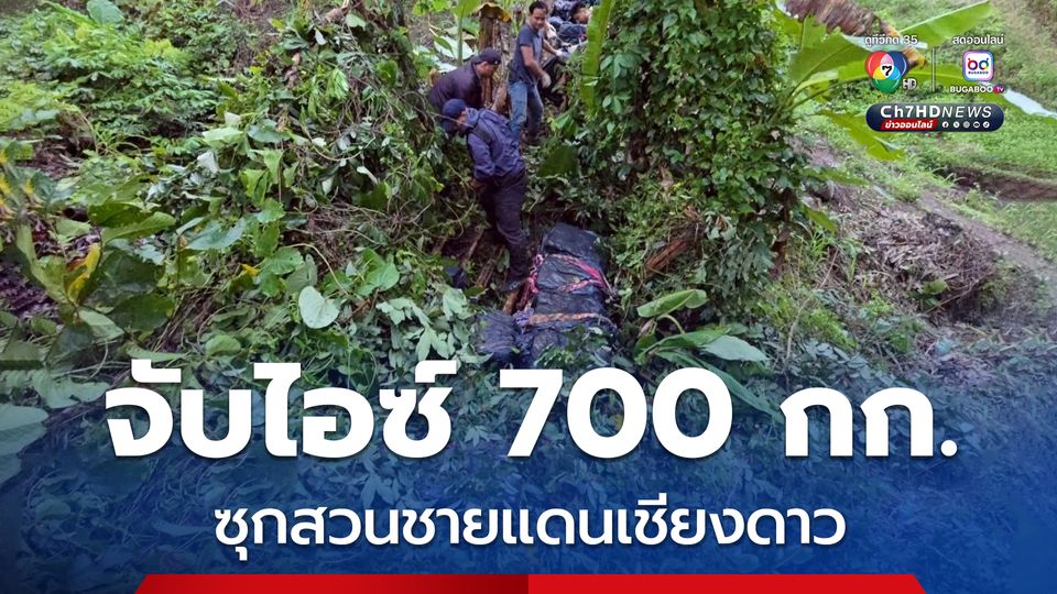กระทั่งเวลาประมาณ 01.30 น. วันที่ (18 ส.ค. 68) เจ้าหน้าที่ตรวจพบว่า นายดำรัส ซึ่งบุคคลเป้าหมาย ได้ขับรถกระบะ สีบอร์นทอง ติดป้ายทะเบียน จ.เชียงใหม่ ออกจากบ้านเดินทางไปที่สวน เจ้าหน้าที่จึงได้เข้าสกัดจับกุม ซึ่งจากการสอบถามนายดำรัสและการตรวจค้นพื้นที่บริเวณโดยรอบ พบกระสอบจำนวน 28 กระสอบ แต่ละกระสอบใส่ถุงสีดำเพื่อกันน้ำ ดัดแปลงเป็นเป้สะพายหลัง ซุกอยู่บริเวณลำห้วยที่อยู่ข้างสวน ภายในกระสอบมียาเสพติดประเภทไอซ์กระสอบละประมาณ 25 กิโลกรัม รวมไอซ์ทั้งสิ้นน้ำหนักประมาณ 700 กิโลกรัม จึงตรวจยึดไว้เป็นของกลาง เพื่อดำเนินการตามขั้นตอนของกฏหมายต่อไป