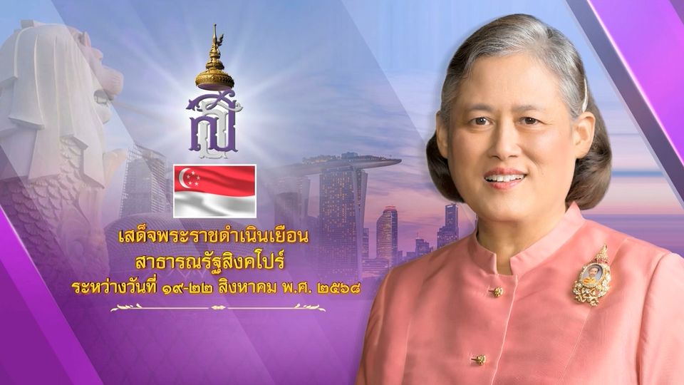ด้วย สมเด็จพระกนิษฐาธิราชเจ้า กรมสมเด็จพระเทพรัตนราชสุดา เจ้าฟ้ามหาจักรีสิรินธร มหาวชิราลงกรณวรราชภักดี สิริกิจการิณีพีรยพัฒน รัฐสีมาคุณากรปิยชาติ สยามบรมราชกุมารี จะเสด็จพระราชดำเนินเยือนสาธารณรัฐสิงคโปร์ ระหว่างวันที่ 19 ถึงวันที่ 22 สิงหาคม พุทธศักราช 2568