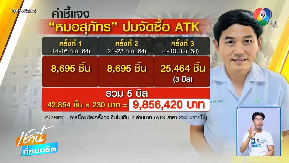 ย้อนดูคำชี้แจง หมอสุภัทร ฮาสุวรรณกิจ ที่จัดซื้อ ATK เมื่อปี 2564 ในนาม โรงพยาบาลจะนะ ปฏิบัติการ 3 ครั้ง รวม 5 ใบสั่งซื้อ