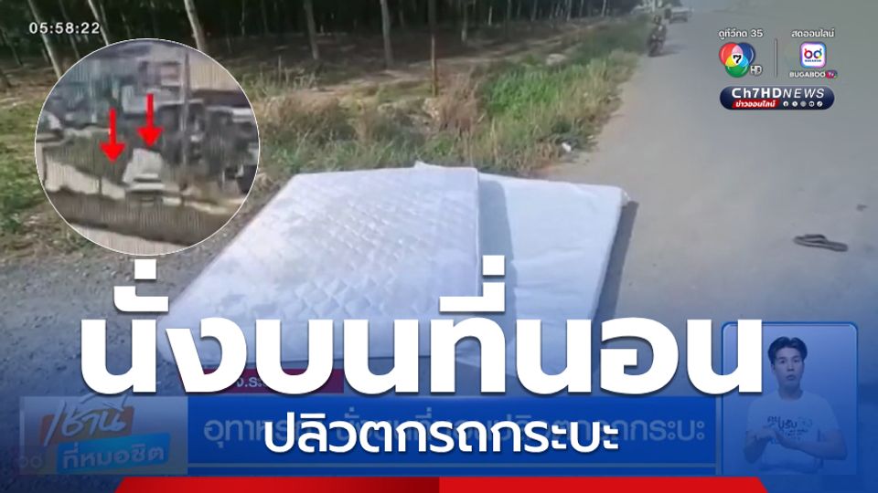 เช้านี้ที่หมอชิต - อุทาหรณ์ขนของย้ายบ้าน หนุ่มขึ้นไปนั่งบนที่นอนท้ายรถกระบะ ถูกลมพัดตกรถบาดเจ็บสาหัส