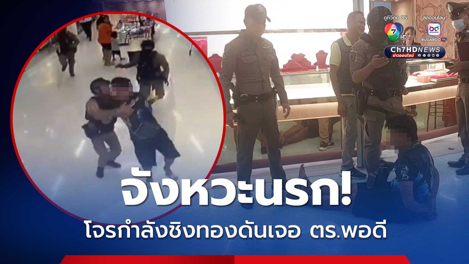 จังหวะนรก! โจรกำลังก่อเหตุชิงสร้อยทองในห้างสรรพสินค้า ดันเจอตำรวจพอดี เลยโดนจับตัวไว้ได้ ทั้งที่ยังวิ่งหนีไม่พ้นประตูห้าง
