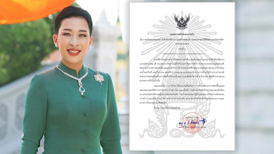 แถลงการณ์สำนักพระราชวัง เรื่อง สมเด็จพระเจ้าลูกเธอ เจ้าฟ้าพัชรกิติยาภา นเรนทิราเทพยวดี กรมหลวงราชสาริณีสิริพัชร มหาวัชรราชธิดา ทรงพระประชวร ฉบับที่ 5