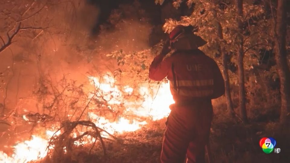 เหตุไฟป่าทางตอนใต้ของยุโรปยังไม่คลี่คลาย ที่สเปนไฟเผาผลาญพื้นที่แล้วกว่า 2 ล้านไร่ ส่วนที่โปรตุเกสตำรวจต้องช่วยกันเร่งต้อน "น้องหมา" ออกจากพื้นที่ไฟไหม้