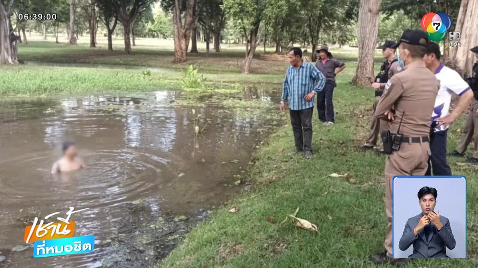 เป็นภาพที่ชายคนดังกล่าวลอยคออยู่ในสระน้ำ เพราะทันทีที่เห็นตำรวจ ชายคนดังกล่าวซึ่งต่อมาทราบชื่อว่า นายตะวัน อายุ 35 ปี ได้กระโดดลงไปในสระทันที ก่อนที่ชาวบ้านและตำรวจจะช่วยกันเกลี้ยกล่อม ให้ชายคนดังกล่าวขึ้นมาจากสระน้ำ