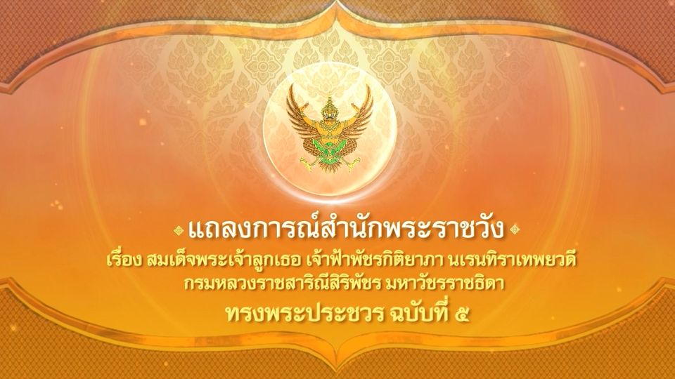 เช้านี้ที่หมอชิต - แถลงการณ์สำนักพระราชวัง เรื่อง สมเด็จพระเจ้าลูกเธอ เจ้าฟ้าพัชรกิติยาภา นเรนทิราเทพยวดี กรมหลวงราชสาริณีสิริพัชร มหาวัชรราชธิดา ทรงพระประชวร ฉบับที่ 5