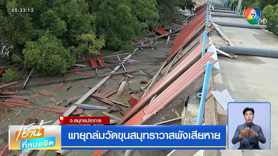 เช้านี้ที่หมอชิต - วงจรปิดจับภาพนาทีพายุพัดถล่มวัดขุนสมุทราวาส หรือ วัดขุนสมุทรจีน วัดกลางทะเลหนึ่งเดียวในสมุทรปราการพังเสียหาย