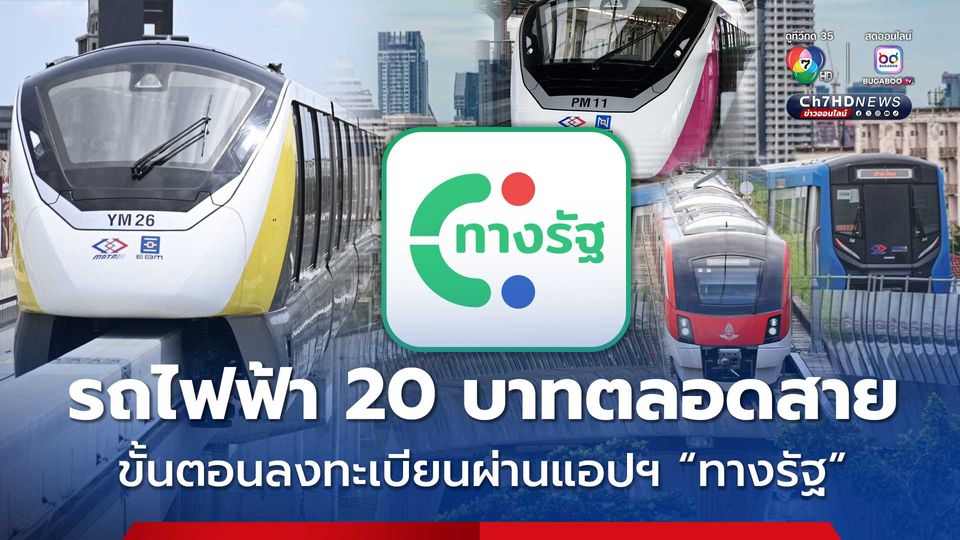 รถไฟฟ้า 20 บาทตลอดสาย เปิดให้ลงทะเบียนผ่านแอปพลิเคชัน “ทางรัฐ” วันที่ 25 สิงหาคมนี้ ไม่จำกัดสิทธิ-จำนวนผู้ลงทะเบียน