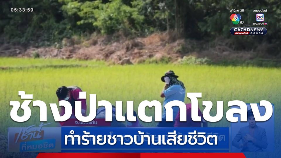 เช้านี้ที่หมอชิต - มีช้างป่าแตกโขลงมาจากอำเภอภูหลวง จังหวัดเลย มาหากินในพื้นที่อำเภอสีชมพู จังหวัดขอนแก่น ก่อนมาทำร้ายชาวบ้านที่ออกไปปักเบ็ดตกปลาตอนกลางคืนเสียชีวิต