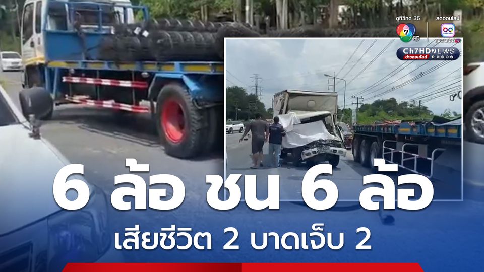 อุบัติเหตุรถกระบะ 6 ล้อตู้ทึบ พุ่งชนท้ายรถบรรทุก 6 ล้อบรรทุกเหล็ก ทำให้ถูกแรงกระแทกติดภายในรถเสียชีวิตทันที 2 คน บาดเจ็บอีก 2 คน