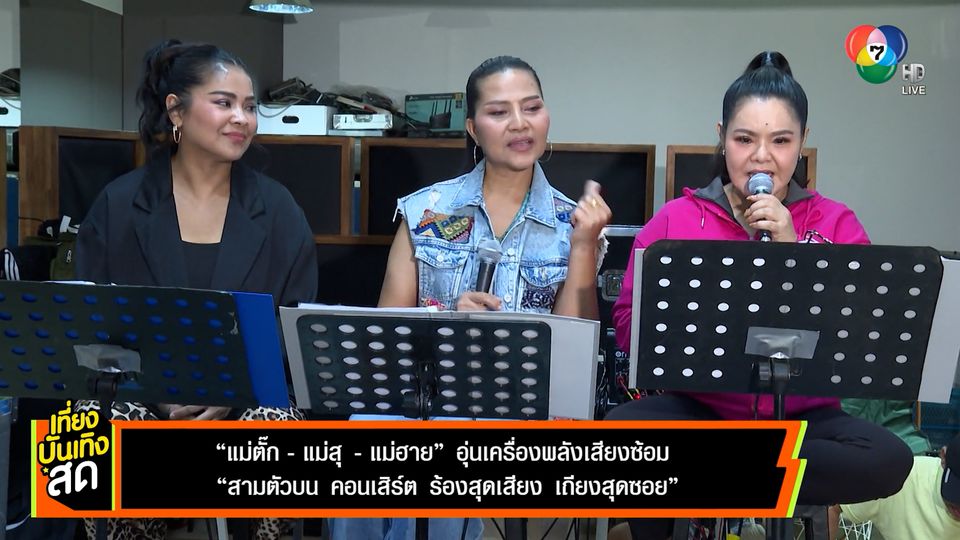 เที่ยงบันเทิงสด - มาที่ความสนุกสนานของ 3 เจ้าแม่แห่งวงการเพลง ตั๊ก ศิริพร, สุนารี ราชสีมา และ ฮาย อาภาพร ที่เค้ากำลังจะมีคอนเสิร์ตด้วยกัน ชื่อว่า "สามตัวบน คอนเสิร์ต ร้องสุดเสียง เถียงสุดซอย" ทั้ง 3 บอกว่าเป็นคอนเสิร์ตใหญ่ครั้งแรก และครั้งสุดท้าย เพราะคงไม่ได้มาจัดแบบนี้ได้ง่าย ๆ ซึ่งเมื่อวานนี้ ก็เลยมีการเปิดห้องซ้อมให้พี่ ๆ สื่อมวลชนได้ไปเก็บภาพเป็นน้ำจิ้ม การันตีด้วยเสียงทรงพลัง 3 แนวเพลง 3 สไตล์ และการปะทะฝีปากกันแบบสุดแซ่บที่หลายคนก็คงรู้ว่าเวลา 3 แม่เค้าอยู่ด้วยกัน จิกกัดฮา ๆ บรัฟกันเก่งอยู่แล้ว