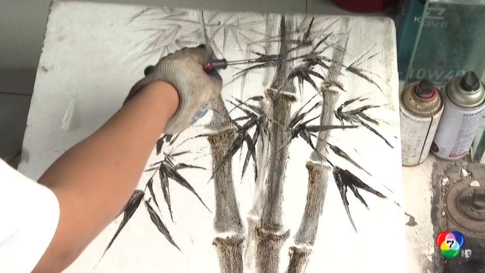 หนุ่มช่างซ่อมรถจักรยานยนต์ชาวจีนใช้น้ำมันเครื่องเก่าสร้างสรรค์ผลงานศิลปะบนกล่องโฟมออกมาได้อย่างน่าทึ่ง