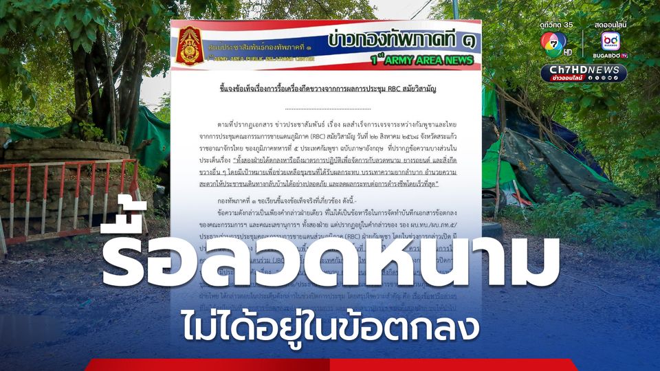 เขมรพูดฝ่ายเดียว! กองทัพภาคที่ 1 ชี้แจงข้อเท็จจริง เรื่องการรื้อเครื่องกีดขวางจากการผลการประชุม RBC สมัยวิสามัญ เผย รื้อลวดหนามไม่ได้อยู่ในข้อตกลง มีเพียงแค่กัมพูชาพูดฝ่ายเดียว!