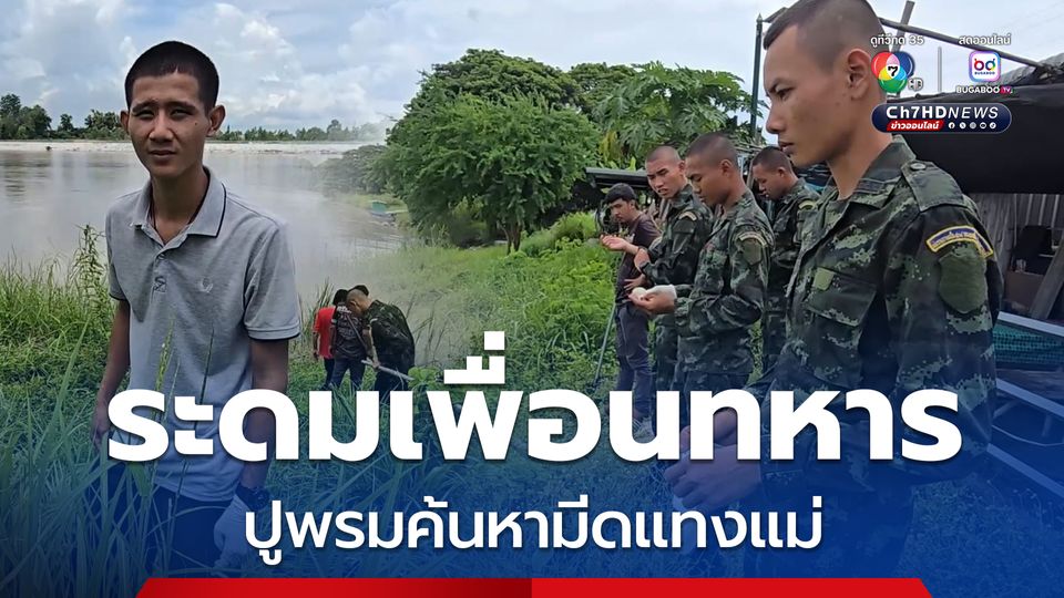 ระดมเพื่อนทหาร ค้นหามีดพกที่สาวเมาใช้ก่อเหตุแทงแม่ คาดว่าโยนทิ้งบริเวณพงหญ้า ริมเขือนแม่น้ำปิง ที่อยู่ติดร้านอาหารจุดเกิดเหตุ