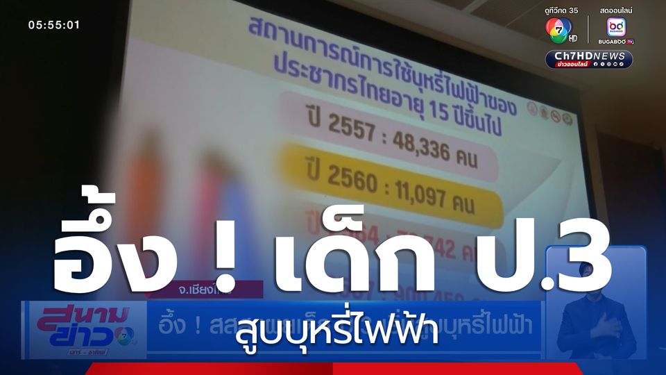สนามข่าวเสาร์-อาทิตย์ - เจอเด็ก ป.3 สูบบุหรี่ไฟฟ้า บางครอบครัวพ่อแม่ซื้อให้ลูกสูบเอง แถมหัวการค้า ให้เอาไปขายเพื่อนที่โรงเรียน ผ่อนได้วันละ 5 บาท