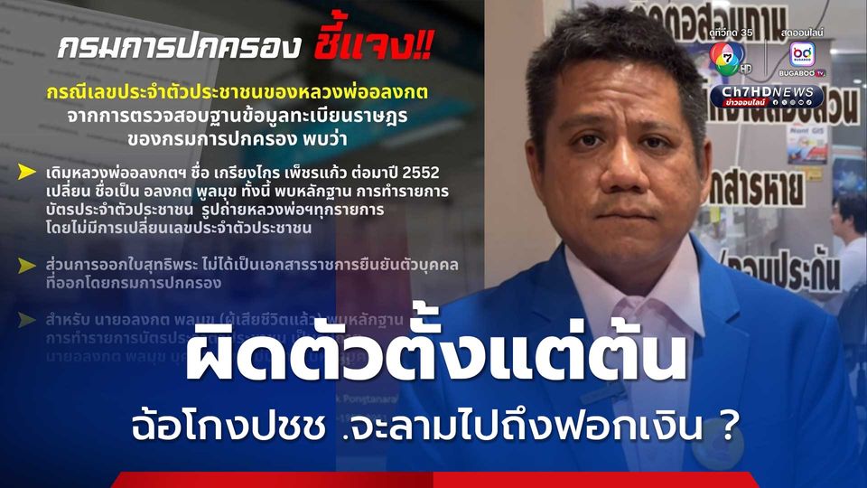 โซเชียลจับจ้องตาไม่กะพริบ หลังกรมการปกครองออกมาชี้แจงว่า เลขบัตรประชาชน 13 หลักของหลวงพ่ออลงกต หรือพระราชวิสุทธิประชานาถ (อลงกต พูลมุข : นามสกุล พูลมุข มีสระ อู) มีเลขประจำตัวประชาชนคนละหมายเลขกับ นายอลงกต พลมุข (ผู้เสียชีวิตแล้ว) ยืนยันว่า บุคคลทั้งสองมิใช่บุคคลคนเดียวกัน และเลขประจำตัวประชาชนไม่ซ้ำกัน ส่วนกรณี "หลวงพ่ออลงกต" เปิดบัญชีพร้อมเพย์รับบริจาคบัญชีกองทุนอาทรประชานาถ ตรงกับชื่อคนตาย ต้องให้แบงก์ตรวจสอบ